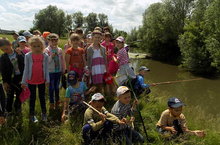Сегодня воспитанники лагеря сходили на рыбалку и провели конкурс "Ловись рыбка большая и маленькая". Узнали много интересного о рыбах, которые обитают в нашей местности.
