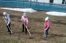 Учащиеся школы облагораживают не только территорию школы, но и села. Сегодня силами 6-7 классов была убрана территория около моста.