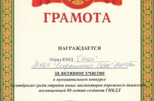 Команда ЮИД "СТОП" приняла участие на муниципальном конкурсе агитбригад среди отрядов юных инспекторов дорожного движения, посвящённый 80-летию создания ГИБДД.