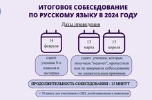 Основной срок проведения итогового собеседования по русскому языку в этом учебном году – 14 февраля 2024 года. В дополнительные сроки – 13 марта и 15 апреля 2024 года – повторно допускаются к итоговому собеседованию по русскому языку участники, получившие «незачет», не явившиеся по уважительным причинам, а также участники, которые не смогли завершить итоговое собеседование по русскому языку по уважительным причинам, подтвержденным документально.