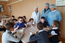 На фото: контроль качества питания представителями общешкольного родительского комитета нашей школы. -