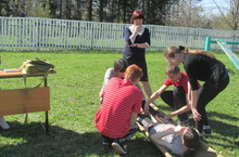 Оказание первой медицинской помощи пострадавшей учащимися 9 класса