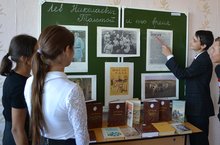На выставке ученики смогли познакомиться с биографическими книгами о жизни и творчестве Льва Николаевича и его знаменитыми произведениями.