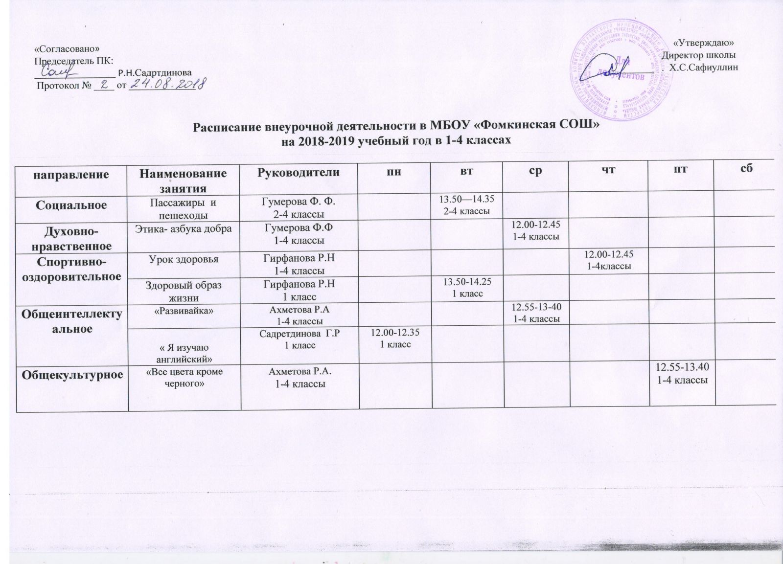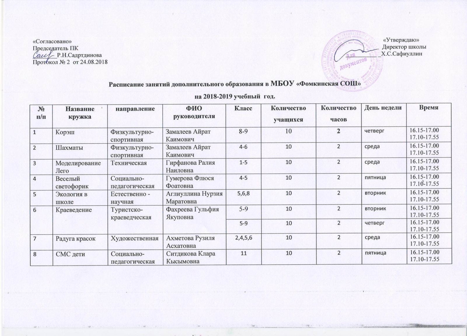 - Расписание занятий дополнительного образованияи на 2018 - 2019 учебный год