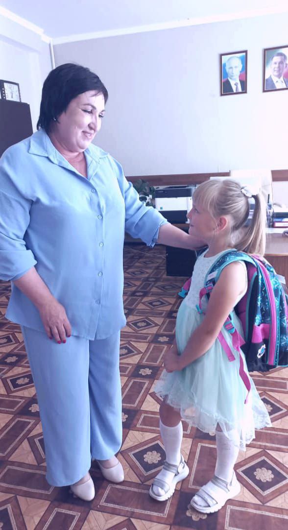 В рамках ежегодной акции "Помоги собраться в школу" начальник отдела образования Рахматуллина Алсу Насыховна вручила школьный портфель с канцелярскими принадлежностями первокласснице школы √ 9 Ульяне. -