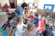 Учитель татарского языка и литературы СОШ 9 г.Нурлат Галямова Гулия Илгизовна в детском саду «Буратино» с воспитанниками средней группы провела занятие на тему «Путешествие в страну здоровья». Дети активно общались на татарском языке о пользе овощей и фруктов для организма человека, нарисовали рисунки.