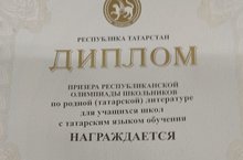 С30 января по 1 февраля на базе ООК «Дуслык» Республиканского олимпиадного центра прошел заключительный этап республиканской олимпиады по родному (татарскому) языку для учащихся школ с татарским языком обучения среди 4-11 классов. Среди призеров есть и учащаяся МБОУ "Степноозерская ООШ". Поздравляем! Спасибо учителю за подготовку призера!