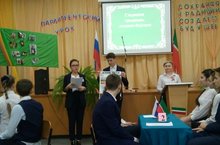 Сегодня 13.02.2020 во всех школах района состоялся Парламентский урок, посвященный 100-летию ТАССР и 75-летию Победы в Велликой Отечественной войне. В Парламенсток уроке в МАОУ "СОШ №9" принял участие заместитель Главы НМР И.Р. Ахметзянов