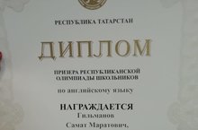 Призер республикаснкой олимпиады по английскому языку 25.01.2020