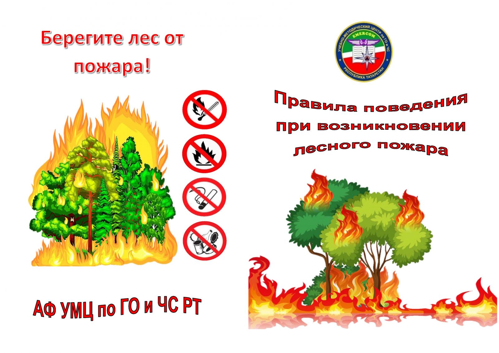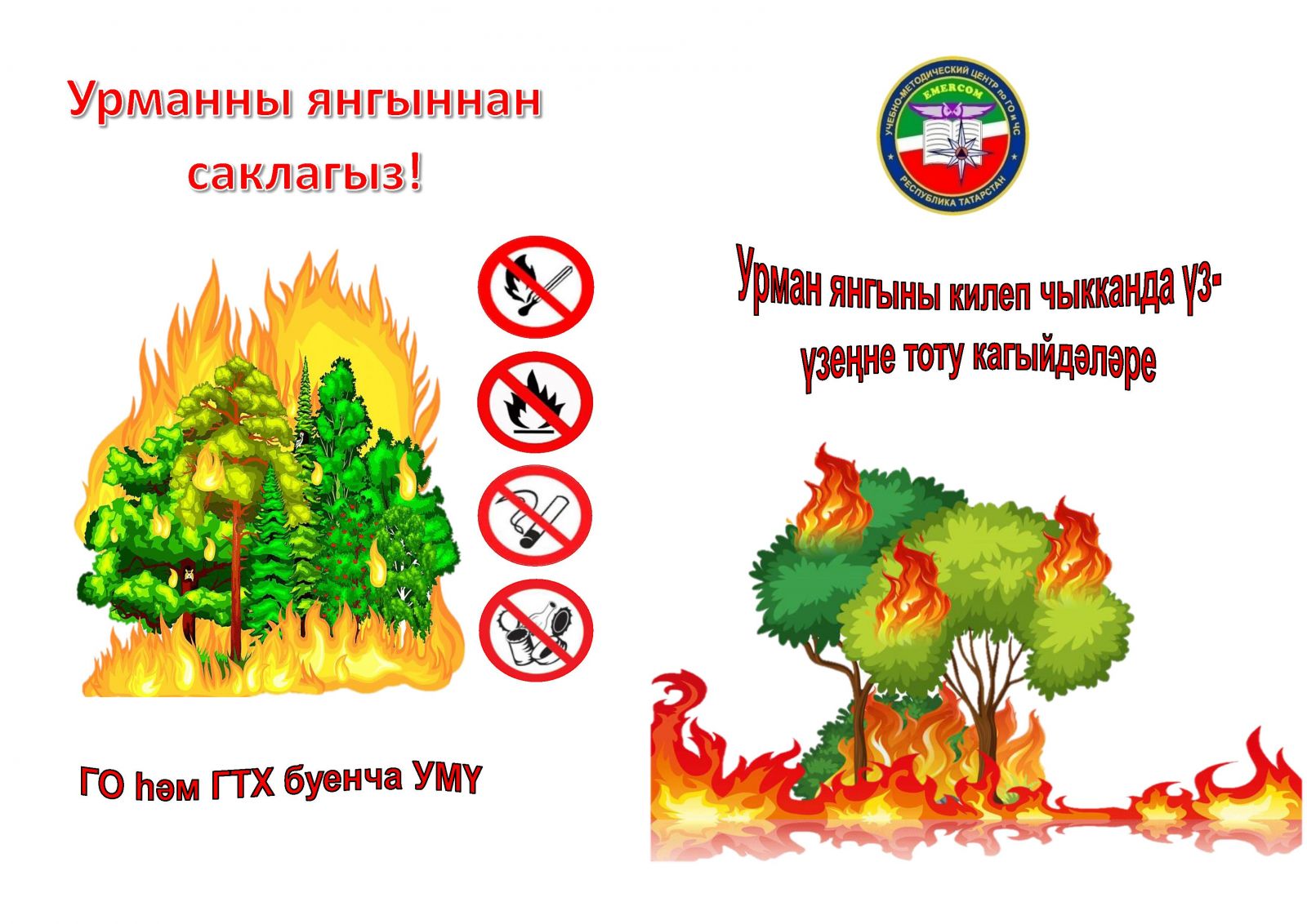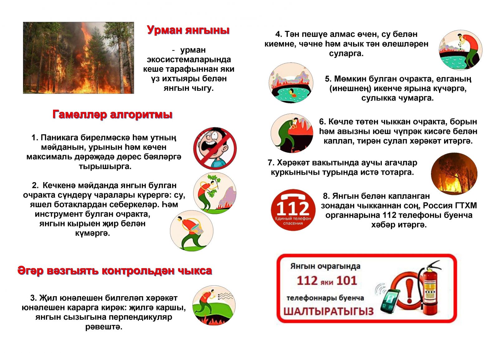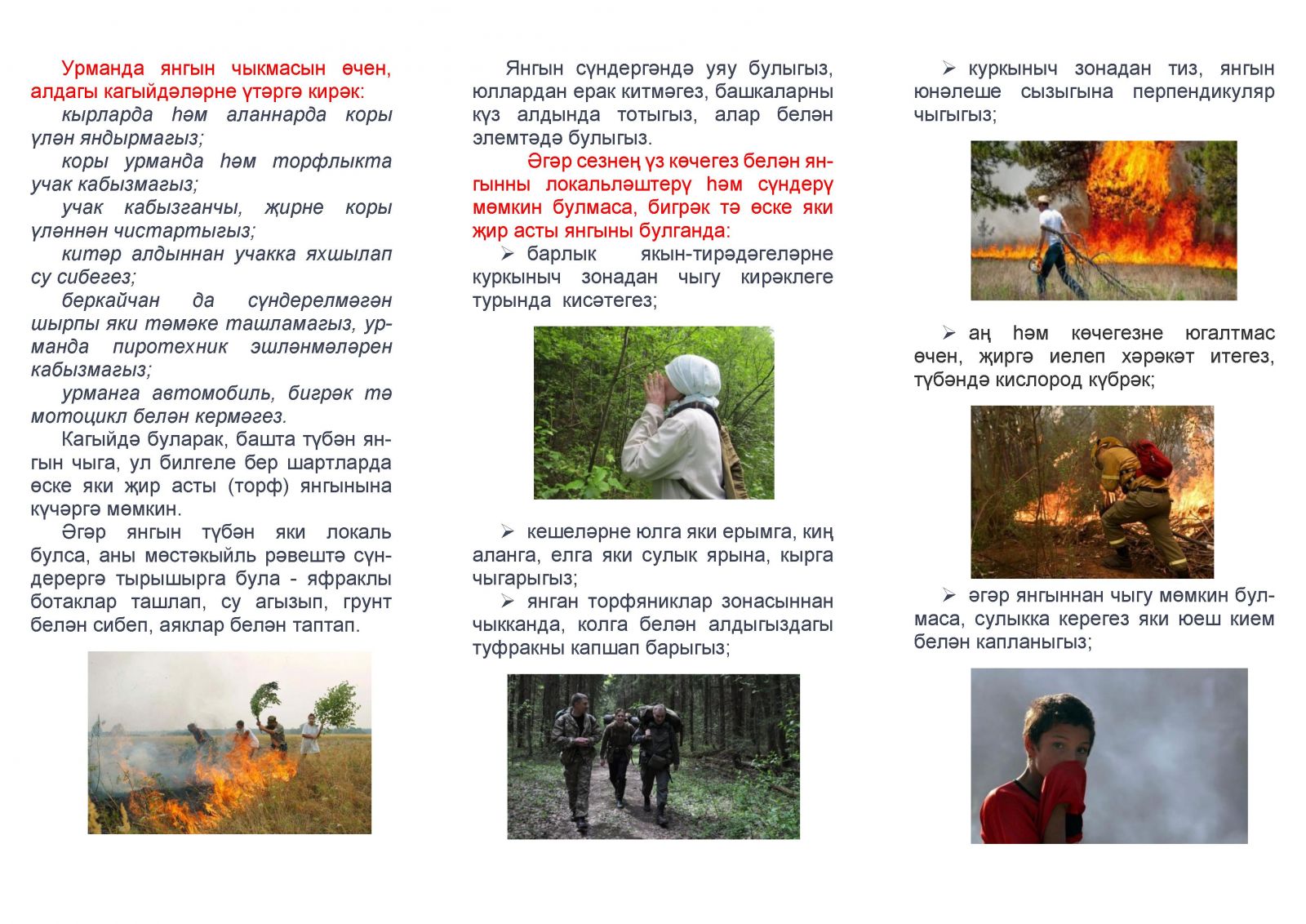 Памятки по правилам поведения при возникновении лесного пожара и правилам поведения на воде/Урман янгыны килеп чыкканда hэм суда узенне тоту кагыйдэлэре