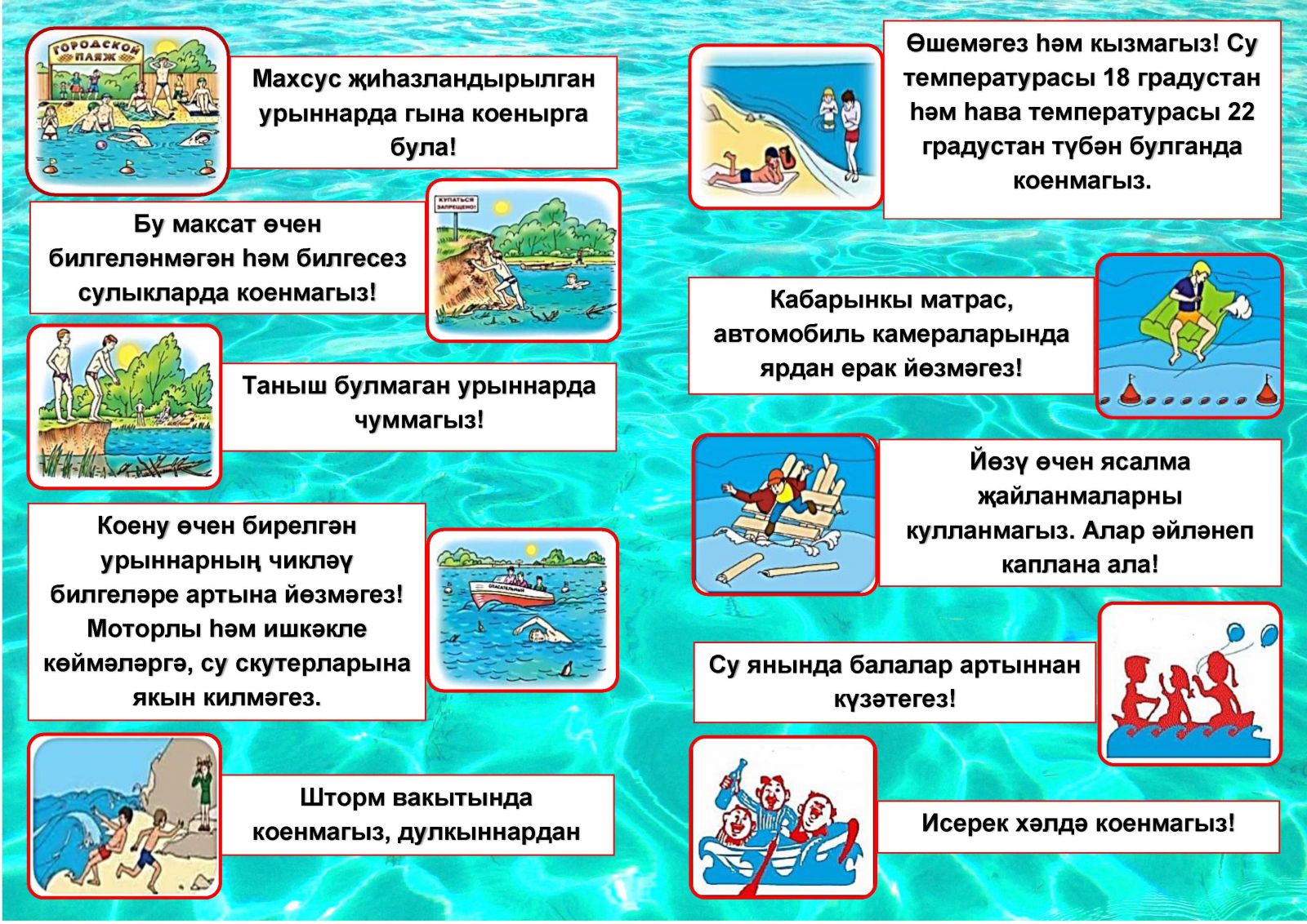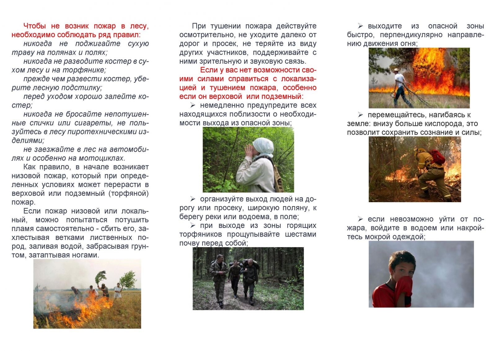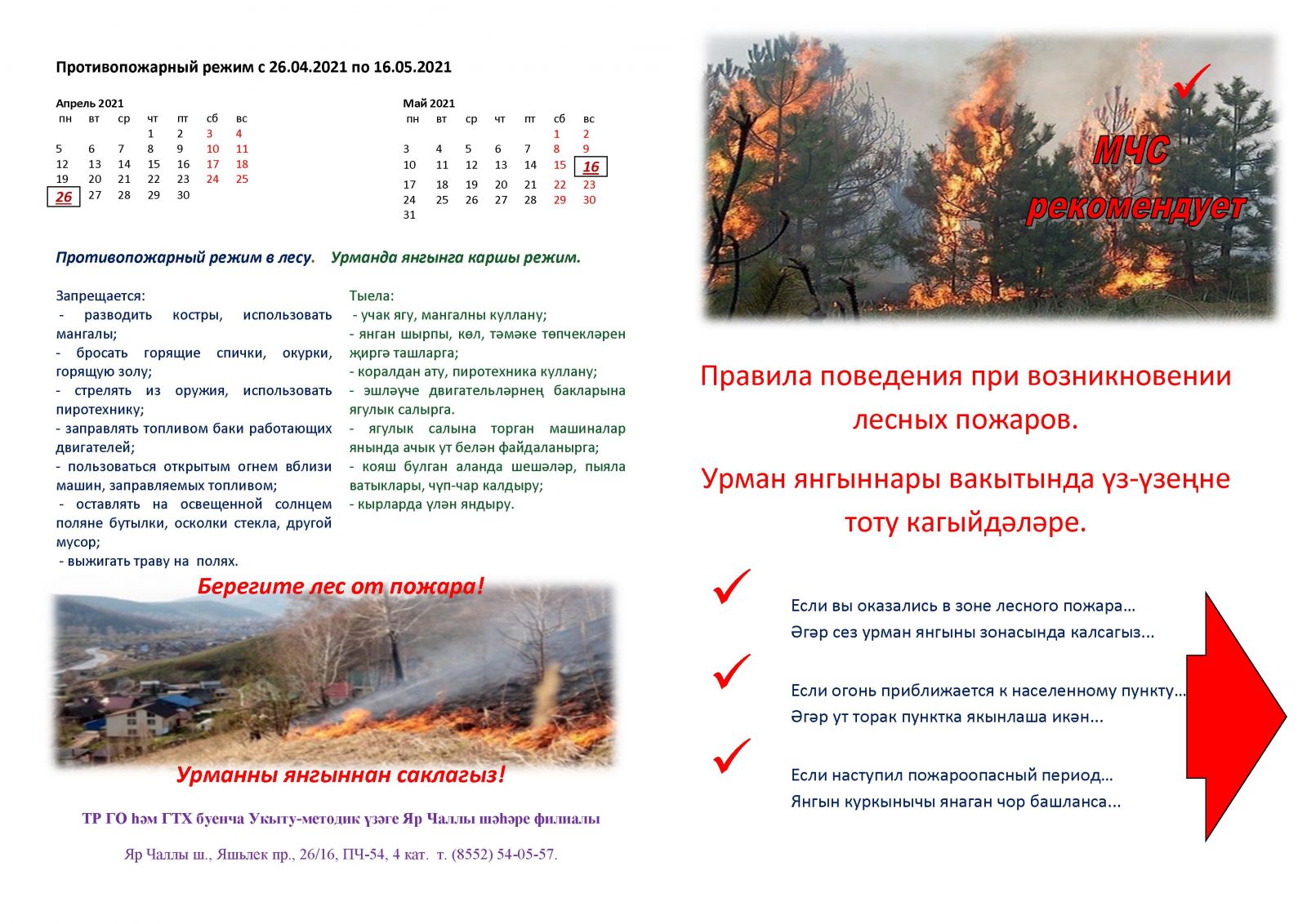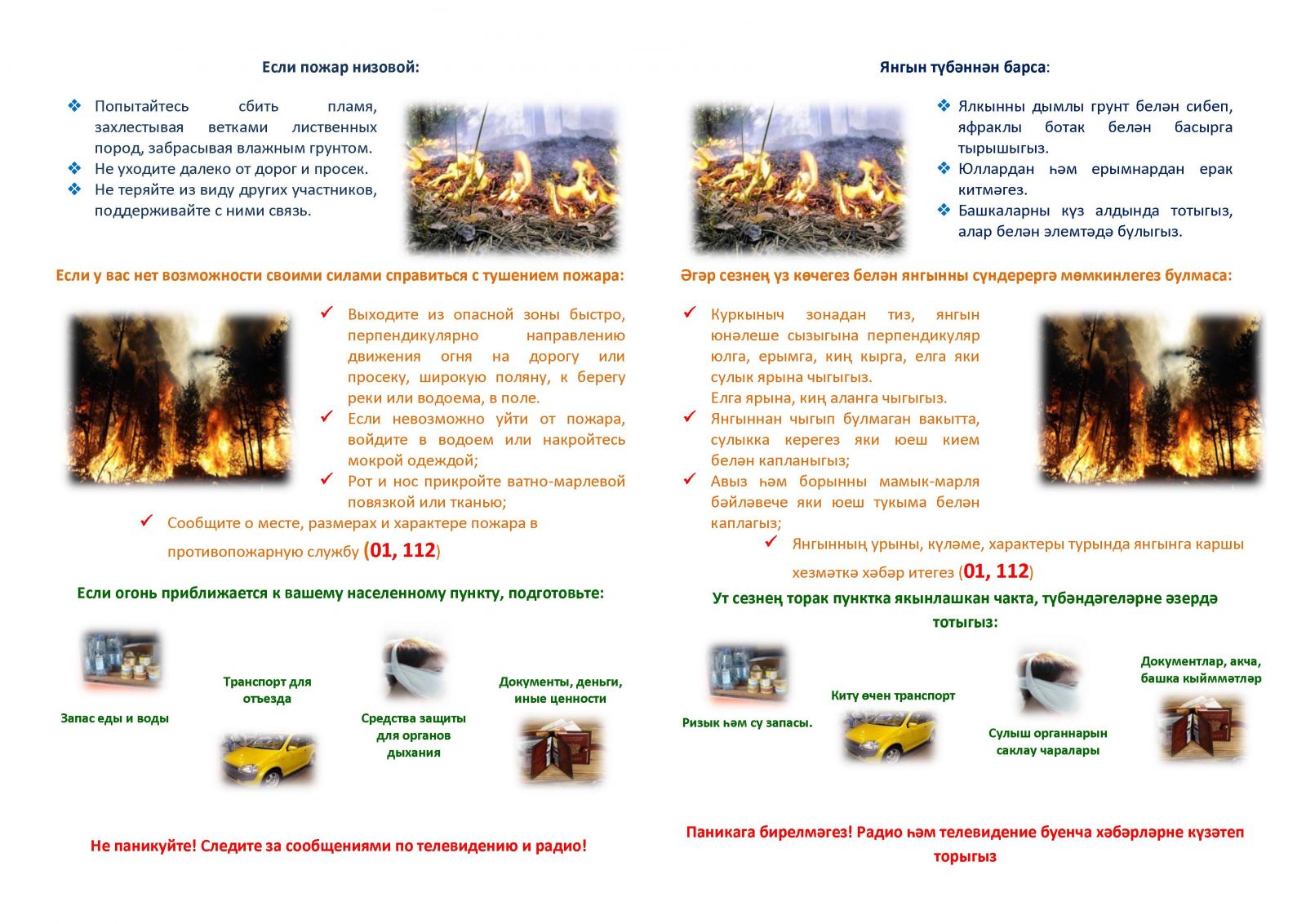 Памятки по правилам поведения при возникновении лесного пожара и правилам поведения на воде/Урман янгыны килеп чыкканда hэм суда узенне тоту кагыйдэлэре