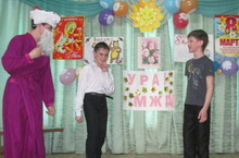 Халыкара хатын-кызлар көне уңаеннан мәктәптә бәйрәм чаралары узды. Бәйрәмнең беренче өлешендә кадерле кунакларыбыз-әниләргә "Ура!МЖД" дип аталган сәхнәләштерелгән чара күрсәтелде. Төп рольләрне мәктәбебезнең иң сәләтле укучылары : Әлфис Рәхимов, Марат Муртазин, Зөлфәт Колмөхәммәтов, Адилә Әхмәтова, Ильвина Уразгильдиева , Ильвира Шәрипова башкарды. Әлеге тамаша малайлар, ир-егетләр тормышында кызлар, әниләр һәм зур әниләрнең кыйммәтен ачуы белән әһәмиятле булды.