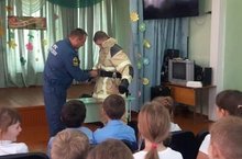 Начальник караула пожарной части Разыков А.А. рассказал ребятам о мерах пожарной безопасности. Дети получили памятки.