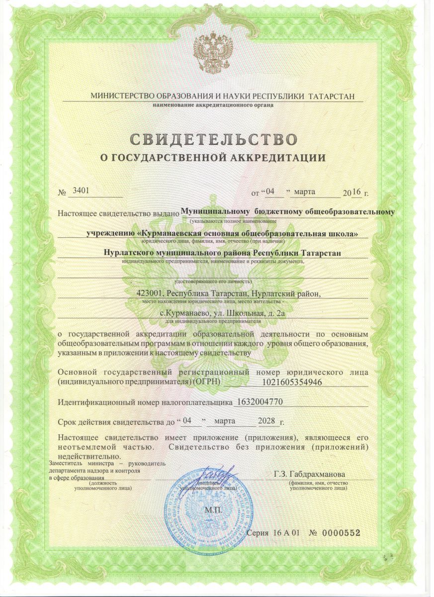 Муниципальное бюджетное общеобразовательное учреждение «Курманаевская основная общеобразовательная школа» Нурлатского муниципального района Республики Татарстан/ Татарстан Республикасы Нурлат муниципаль районы "Кизләү төп гомуми белем мәктәбе" муниципаль бюджет гомуми белем учреждениесе