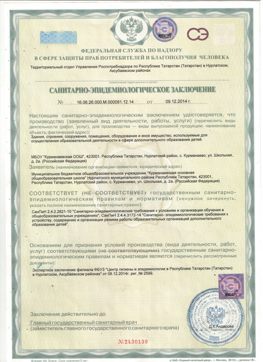 Санитарно - эпидемиологическое заключение/Санитар - эпидемиологик бәяләмә