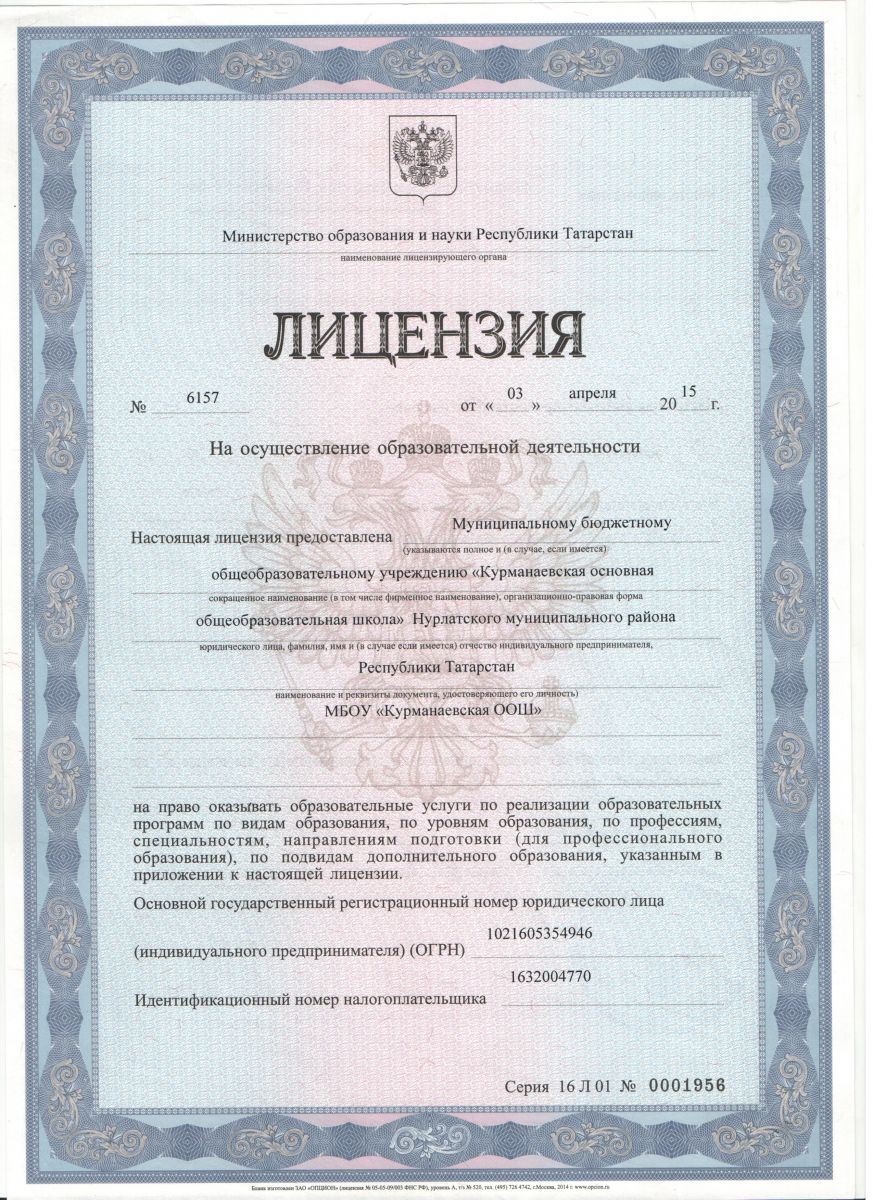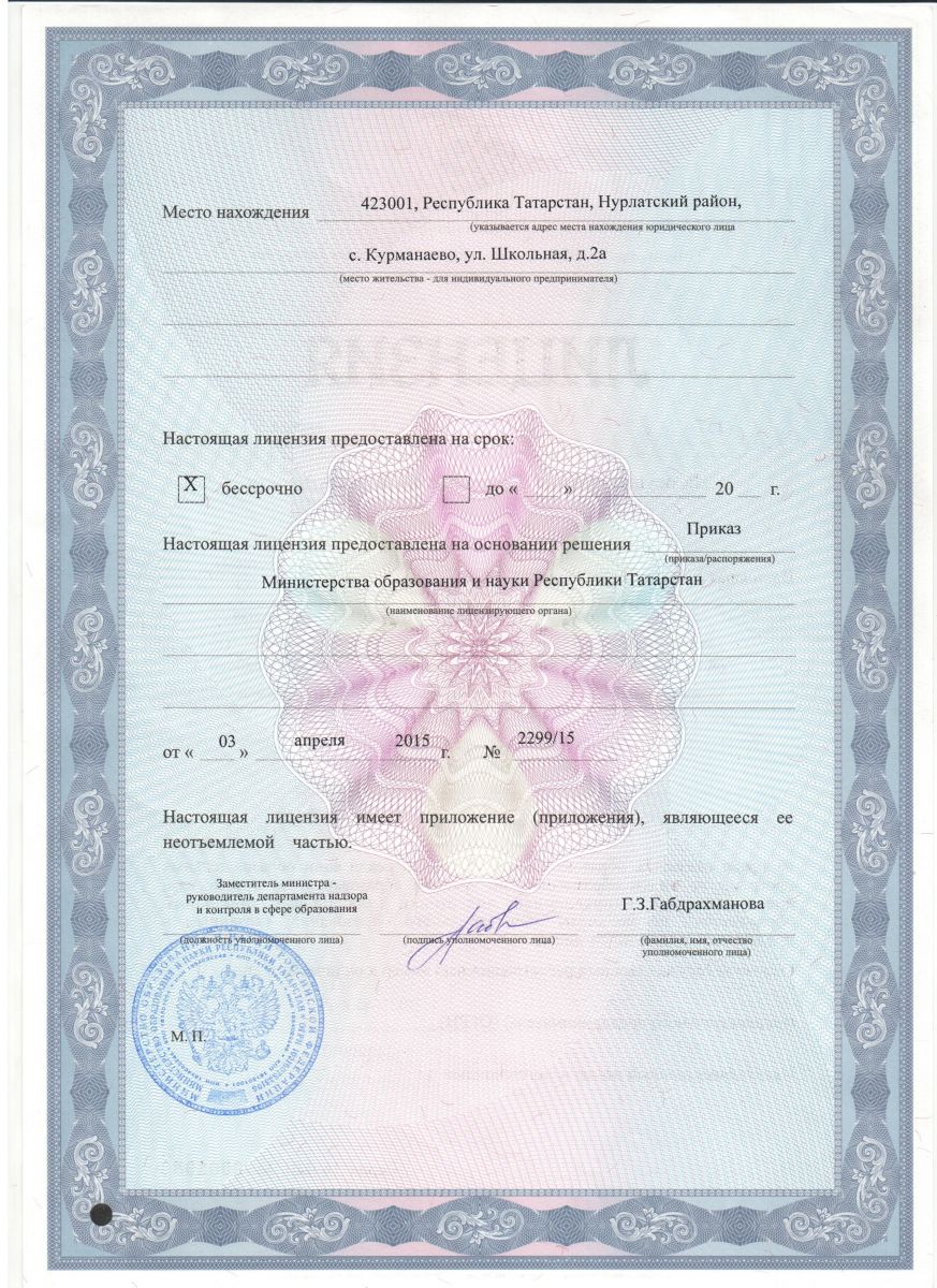 Лицензия на осуществление образовательной деятельности/ Белем бирү эшчәнлеген гамәлгә ашыру турында лицензия