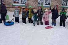 Ребята первого класса вместе с родителями и братишками, сестренками участвовали в зимнем мероприятии "Сами саночки бегут"