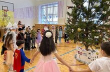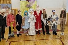 Для учащихся начальных классов состоялось новогоднее представление. Ребята пели песни, танцевали, отгадывали загадки Снегурочки, играли с Дедом Морозом. Но и родители не остались в стороне: они вместе с ребятами украшали елки, отгадывали песни. Под бой курантов Дедушка Мороз раздал всем сладкие новогодние подарки. / Башлангыч сыйныф укучылары өчен яңа ел тамашасы булды. Балалар җырлар җырладылар, биеделәр, Кар кызы табышмакларын чиштеләр, Кыш бабай белән уйнадылар. Ләкин әти-әниләр дә читтә калмадылар: алар балалар белән бергә чыршыларны бизәделәр, җырлар чиштеләр. Курантлар тавышы астында Кыш Бабай һәркемгә татлы Яңа ел бүләкләре өләште.