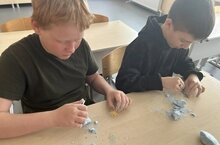 Затем ребята попробовали себя в роли юных исследователей и провели необычные «археологические раскопки» морских животных. С особым интересом и радостью ребята находили фигурки рачков, акул, омаров, морских коньков, китов и морских звёзд. Мероприятие вызвало у детей много положительных эмоций, удивления и восторга.В завершение встречи ребята собрались за дружным чаепитием, где смогли поделиться впечатлениями и ещё раз вспомнить самые интересные моменты дня. / Язгы каникул вакытында 6 класс укучылары кызыклы һәм мавыктыргыч чарада катнаштылар. Балалар зур тырышлык белән Алмаз мозаикасыннан ачык сурәтләр җыйдылар, сабырлык, пөхтәлек һәм иҗади сәләтләр күрсәттеләр. Аннары балалар үзләрен яшь тикшеренүчеләр ролендә сынап карадылар һәм диңгез хайваннарының гадәти булмаган «археологик казу эшләре» уздырдылар. Балалар кысла, акула, Омар, диңгез тимераяклары, кит һәм диңгез йолдызлары сыннарын аеруча кызыксынып һәм шатланып таптылар. Бу чара балаларда бик күп уңай хисләр, гаҗәпләнү һәм соклану уятты. Очрашу азагында балалар тату чәй эчәргә җыелдылар, анда тәэсирләре белән уртаклаштылар һәм көннең иң кызыклы мизгелләрен тагын бер кат искә төшерделәр. -