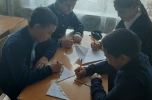 "Көзге игелек атнасы" акциясе кысаларында укучылар Бөек Ватан сугышы ветераннарына, тыл хезмәтчәннәренә хатлар яздылар. -