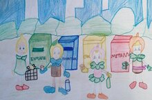 Наш воспитанник участвует в конкурсе «Эколята за раздельный сбор отходов и повторное использование материалов», муниципальный этап Республиканского конкурса. Основные утвержденные герои по экологическому воспитанию Елочка, Шалун,Умница и Тихоня. Смысл этого рисунка заключается о том, чтобы показать, как важен правильный подход к обращению