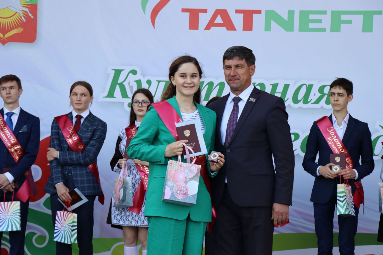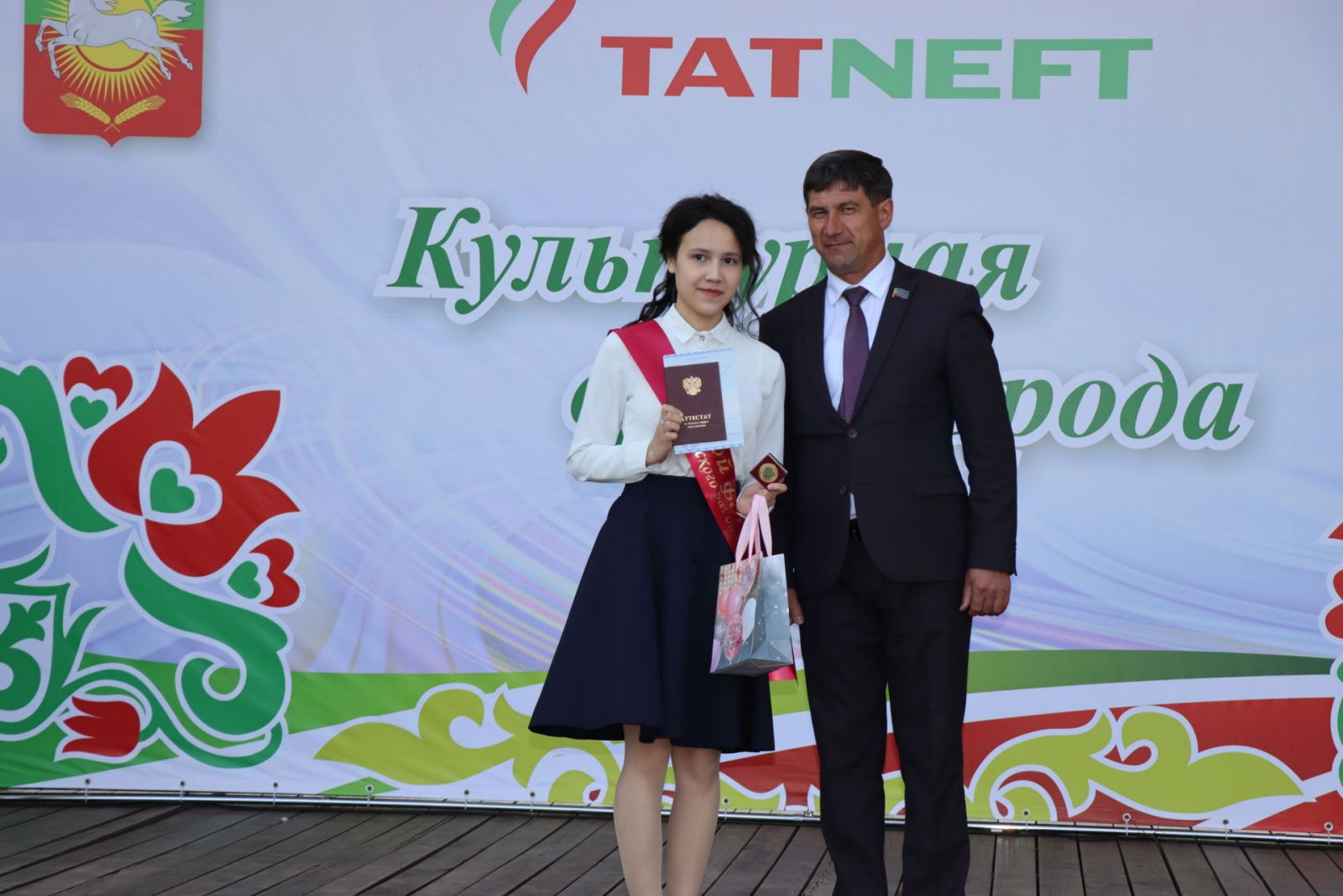 Отдельно отметили выпускников, которые своими достижениями в олимпиадном движении прославили наш район и республику. Сертификатом программы «Одаренные дети» благотворительного фонда «Татнефть» и денежной премией в размере 20 тысяч рублей были награждены выпускница гимназии Полина Миронова-Замалеева.