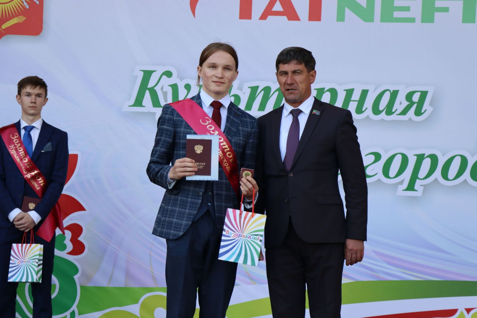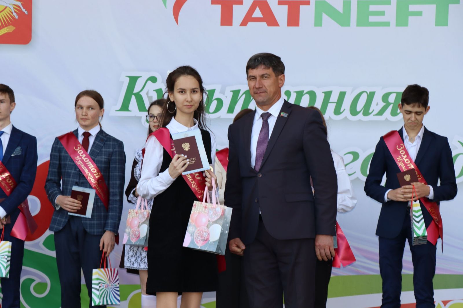 "Театр» скверы сәхнәсендә район мәктәпләренең 29 чыгарылышына тантаналы шартларда аттестатлар һәм" Укудагы аерым уңышлары өчен!» медале тапшырдылар.