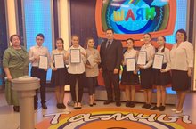 Сегодня ученицы 7-х классов Нурлатской гимназии приняли участие в популярной передаче телеканала «ТНВ» «Тамчы шоу». Их соперниками стали ученики Альметьевского лицея. В упорной интеллектуальной борьбе нурлатские девушки смогли выбиться вперед со счетом 15:13 и одержать заслуженную победу.