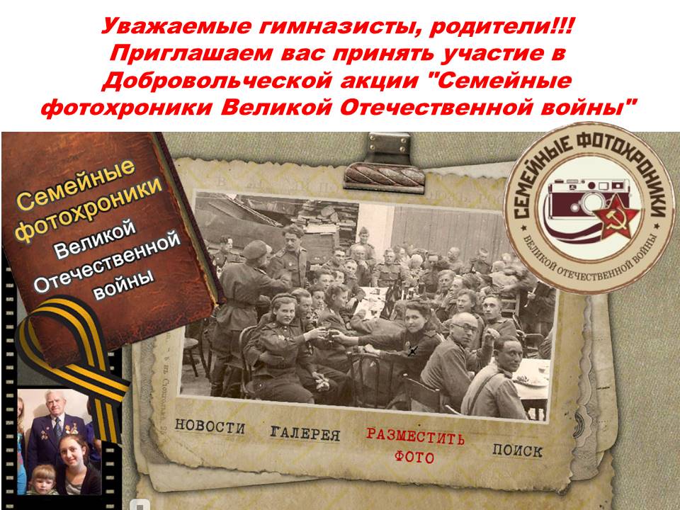 Приглашение на участие в Добровольческой Акции "Семейные фотохроники Великой Отечественной войны"