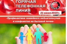 21 июня 2019 года будет открыта телефонная «горячая линия» по вопросам профилактики семейного неблагополучия и конфликтов на бытовой почве.