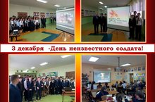 3 декабря учитель обществознания Авдушкина Н.А. подготовила для обучающихся 5-7 классов урок Памяти «Имя твое – Неизвестный солдат», а в рекреации гимназии для всех обучающихся ею была подготовлена презентация о памятной дате - «День неизвестного солдата». Это новая памятная дата, которая появилась в нашем государстве по инициативе участников "Поискового движения России". В начале мероприятия Н.А. познакомила школьников с историей появления этого праздника, а затем показала видео о памятниках Неизвестному солдату в городах России, в том числе и в г.Нурлат. Она отметила, как важно помнить об этой дате, ведь это дань благодарности всем, кто погиб на фронтах, память о каждом солдате, защищавшем нашу Родину, и на чьи могилы не могут прийти их родственники и потомки. Важно бережно хранить и передавать из поколения в поколение эту память.