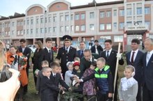 В этот праздничный день гимназию посетили уважаемые гости -Глава Нурлатского муниципального района Кузюров Р.А. и первый заместитель министра лесного хозяйства Мусин Х.Г. Они участвовали в посадке деревьев лжетсуга, привезенных из Канады. Равиль Афроимович и Харис Гайнутдинович ознакомились с готовностью гимназии к учебному году и пообщались с первоклассниками..