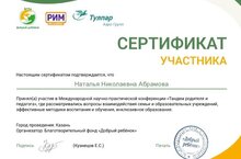 1 декабрьдә экспертлар чыгышлары, дискуссияләр һәм практик мастер-класслар белән «Ата-аналар һәм педагог тандем» халыкара ата-аналар - педагогик конференциясе узды. Конференциядә "Нурлат гимназиясе"нән Абрамова Н.Н. бу чарада катнашты.