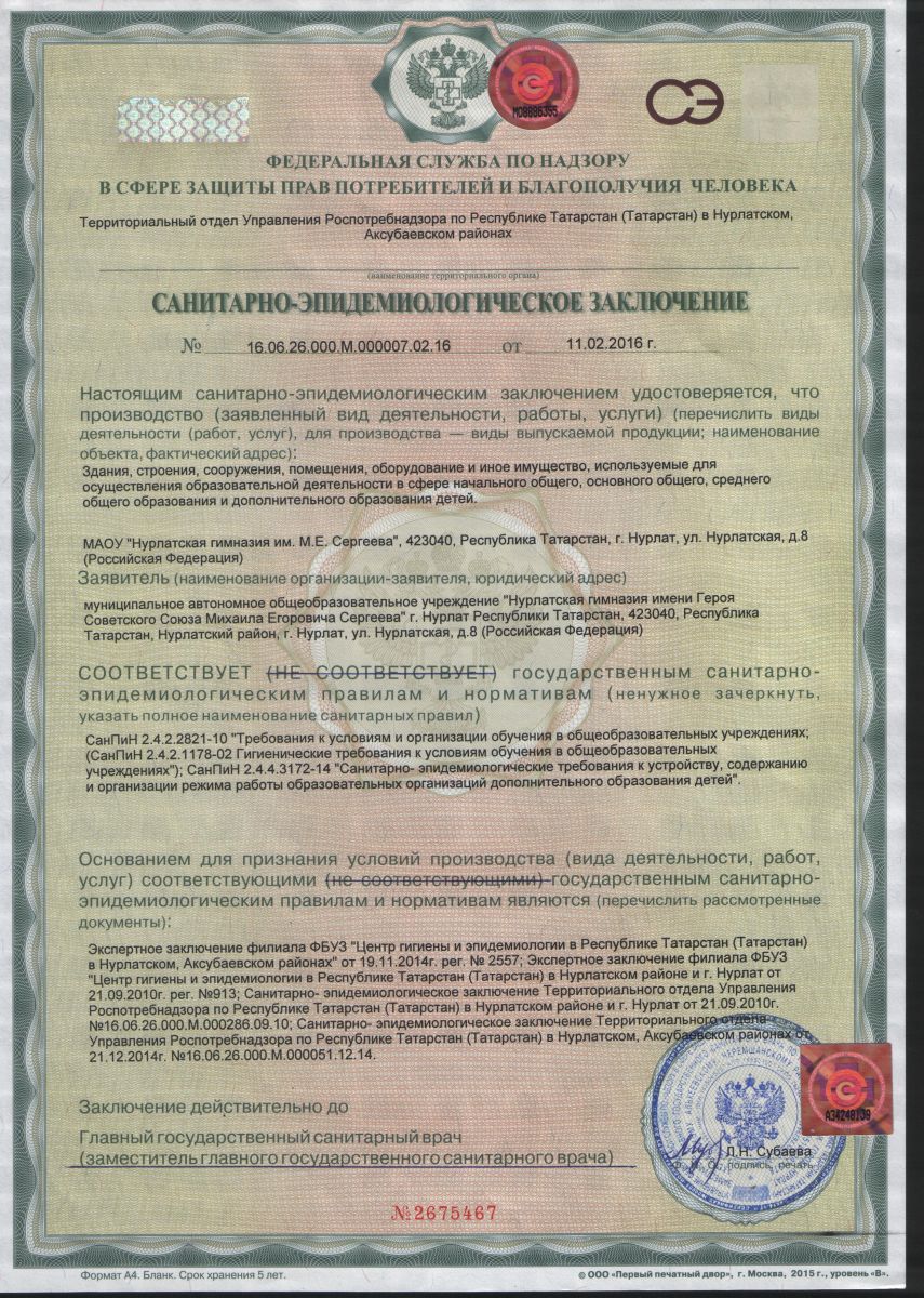 | Короткое название: | МАОУ «Нурлатская гимназия им.М.Е.Сергеева» г.Нурлат РТ |
