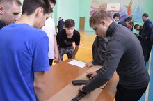 В рамках месячника Воинской славы в техникуме 15 февраля были проведены соревнования по военно-прикладным видам спорта «Ты призывник». Соревновались по следующим видам: надевание противогаза, поднятие гири (16 кг.), челночный бег 5*10, отжимание, подтягивание, сборка и разборка автомата АК-74. В соревнованиях приняли участие все группы. Болельщики активно поддерживали свои команды.