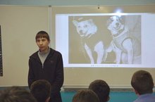 Была представлена презентация «Важнейшие этапы освоения космоса», где рассматривались вопросы космоса от начала его освоения и до наших дней. Были использованы видеоролики о Ю.Гагарине и В.Терешковой, о выходе в открытый космос А.Леонова, С Савицкой, о стыковке кораблей «Союз-Аполлон».