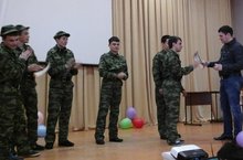 Накануне Дня защитника Отечества в техникуме состоялся большой концерт, посвященный этому празднику. Преподавателям и мастерам производственного обучения были вручены памятные подарки. В адрес мужчин звучали теплые поздравления и самые добрые пожелания. Затем прошел конкурс "А ну-ка, парни", в котором приняли участие команды выпускных групп № 411 и № 412. Парни, будущие защитники Родины, соревновались в мастерстве владения оружием, в солдатской смекалке и находчивости, в силе и ловкости. Победа в конкурсе по праву досталась команде группы№411. А концертная программа порадовала зрителей разнообразием художественных номеров и жанров. Активное участие в подготовке концерта приняли наши первокурсники и молодые преподаватели техникума Мурзаханова М.П., Туешева Е.Ф. и Комиссарова М.М.