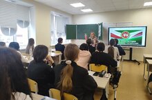 Преподаватель обществознания техникума Трофимова Е.В. провела для наших студентов информационный час, посвящённый Дню Конституции Республики Татарстан.