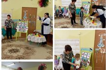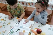 А после игры провели беседу о пользе витаминов и о том, какое должно быть правильное питание.Әй, әче... - Әй, тәмле! Мондый кычкырулар белән без бүген "тәм табыгыз" уен-экспериментын башладык Өлкән төркем балалары күзләрен бәйләп, нәрсә ашаганнарын аңлаталар. Шулай итеп без яшелчә һәм җиләк-җимеш исемен ныгыттык; аларның төсе, формасы һәм тәме нинди булуын ачыкладык. Ә уеннан соң витаминнарның файдасы һәм дөрес туклануның нинди булырга тиешлеге турында сөйләштек..