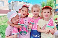 А арбузовое мороженное вдвойне. Дети на прогулке создали себе арбузовое настроение, которым поделились со всеми,посмотрите, какие они довольные! -