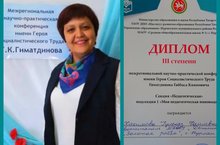 Поздравляем Хакимову Гульназ Фаилевну. Она удостоилась диплома III степени в Межрегиональной научно-практической конференции имени Героя Социалистического труда Г.К.Гиматдинова".