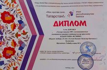 "Мин яратам сине, Татарстан" ачык республика бәйгесендә "Татарстаныма - 100!" номинациясендә "Ильмухина Ясминә 1 нче дәрәҗә дипломга ия булды. Җитәкчесе: Хабибуллина Ф.Х.