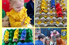 Ведь использование бросового материала(бытового мусора) приучает ребёнка к бережливости,он никогда не сломает игрушку,сделанную своими руками,в дальнейшем станет уважать и труд других людей.Бәләкәй табигать сакчылары бүген мавыгып күкәй савытларыннан чылбырлар ясаганнар. Ташландык материалны(көнкүреш чүп-чарын) куллану баланы сакчыллыкка өйрәтә,ул беркайчан да үз куллары белән ясаган уенчыкны сындырмаячак, киләчәктә башка кешеләрнең хезмәтен дә хөрмәт итәчәк.