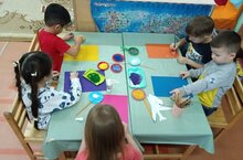 Бүген өлкән төркем балалары Чын тылсымчыларга әверелделәр һәм үз эшләрен үзләре әзерләгән төрле төстәге тоз кристаллары белән бизәделәр. Шулай итеп, аппликация дәресендә тоз белән гади экспериментлаштыруның үз дәвамы бар иде.