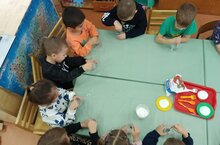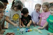 В связи с Годом научно-технологического развития в Республике Татарстан и Десятилетием науки и технологий в России в детском саду проводим пятиминутки про "Часы науки". Экспериментирование "Весёлые капельки"