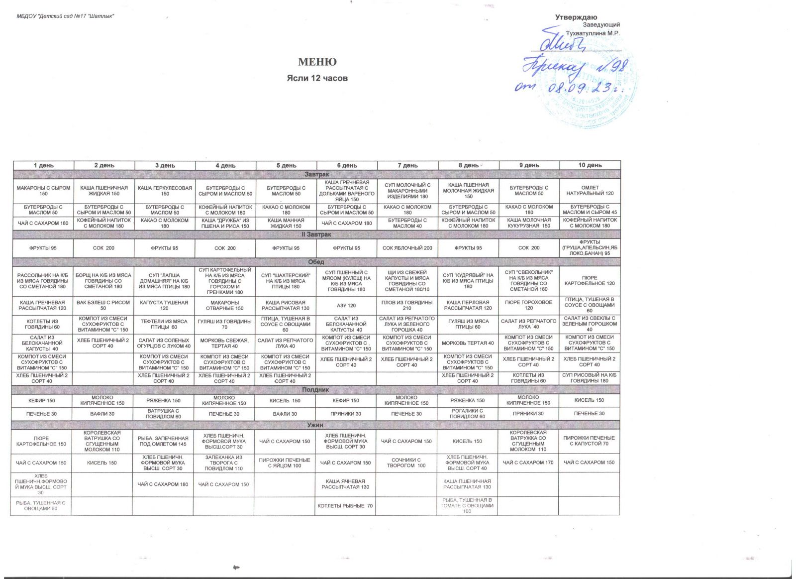 Меню ясли на осенне-зимний период 23-24гг/23-24 елларда көзге-кышкы чорда ясле менюсы