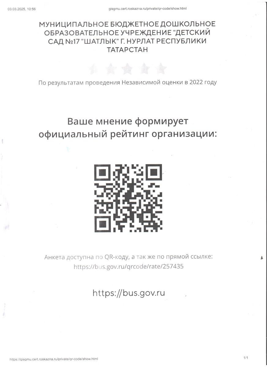 муниципальное бюджетное дошкольное образовательное учреждение «Детский сад №17 «Шатлык» г.Нурлат Республики Татарстан/Татарстан Республикасы Нурлат шәһәре «17 нче номерлы «Шатлык» балалар бакчасы» муниципаль бюджет мәктәпкәчә белем бирү учреждениесе
