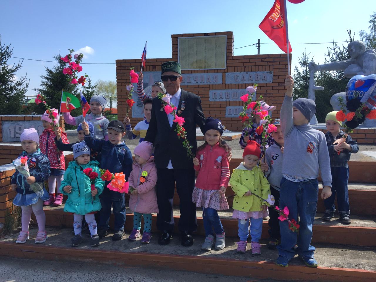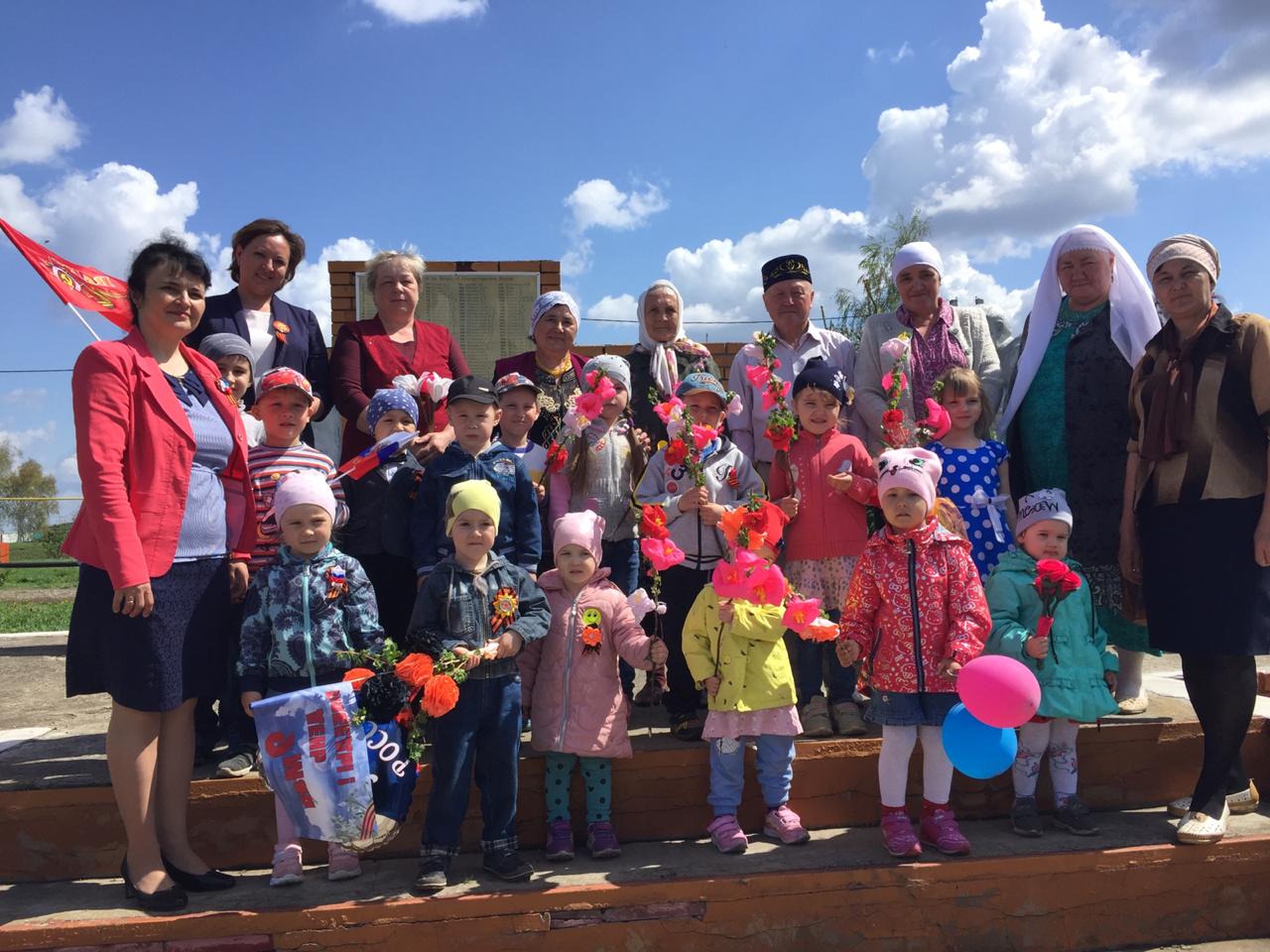 Опубликовано: 08.05.20198 май көнне мәктәп коллективы һәм балалар Бөек Җиңүгә багышланган митингта катнашты./8 мая коллектив школы и дети участвовали в митинге посвященной к Великой Победе