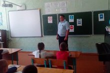 В предверии летних каникул в школе прошла встреча обучающихся с инспектором ГИБДД. Инспектор провел беседу на тему: "Профилактика ДТП во время летнего периода"