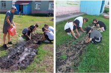 Школьники, под руководством учителей благоустраивают территорию школы!